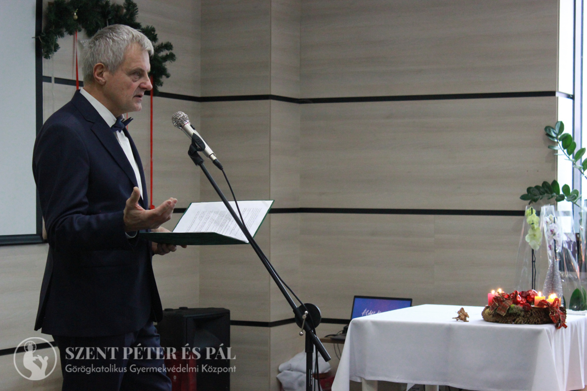 Az eseményt Terdik János atya nyitotta meg, aki egy közös imával és lelki üzenettel ajándékozta meg a jelenlévőket. Beszédében a karácsony szellemére és jelentőségére emlékeztetett, arra ösztönözve mindenkit, hogy ebben az ünnepi időszakban még inkább fordítsanak figyelmet egymásra. Tripsó Zoltán István, az intézmény vezetője, szintén köszöntötte a megjelenteket. Beszédében összegezte az elmúlt évet, hangsúlyozva az intézmény által elért eredményeket és a közösség összetartó erejét. A fenntartó nevében Dr. Tóthné dr. Tőkés Margaréta is üdvözölte a vendégeket. Beszédében kiemelte a fenntartó szerepét és az intézmény céljai iránti mély elkötelezettséget.