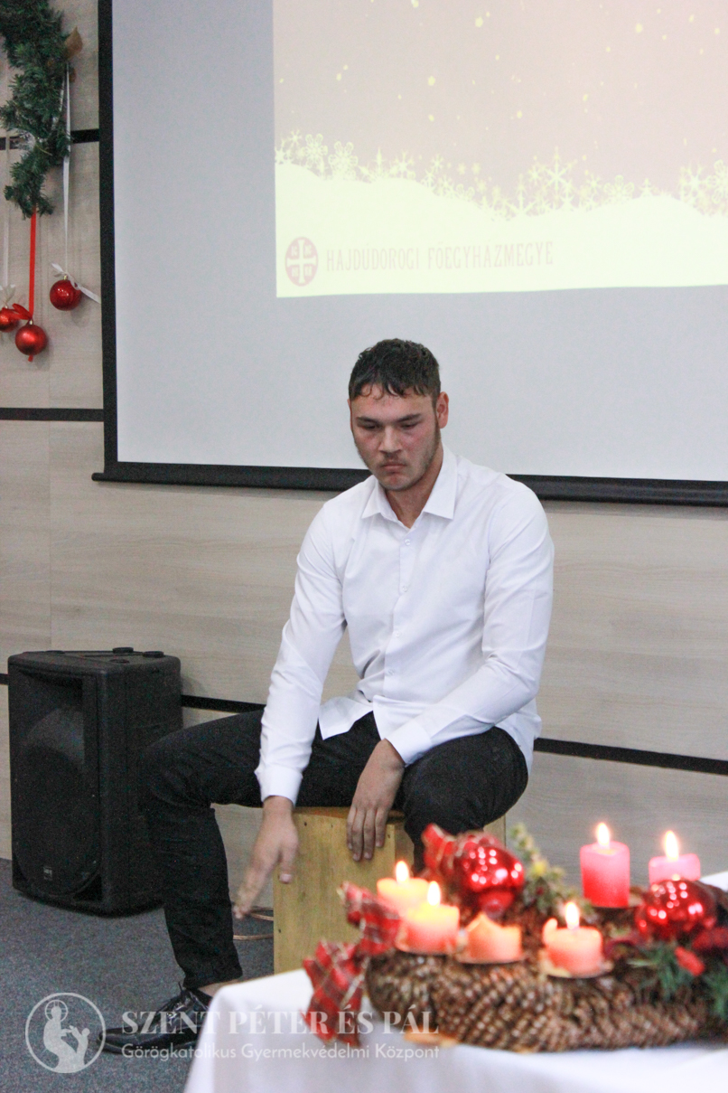 Szegedi Dávid előadásában a „Lelkem áldd az Urat” és a „Minden Karácsonykor van, egy álmom” című művek csendültek fel, amelyeket a különleges cajon hangszerén kísért. Ez a ritka zenei élmény különleges mélységet és ünnepi hangulatot csempészett a rendezvénybe.