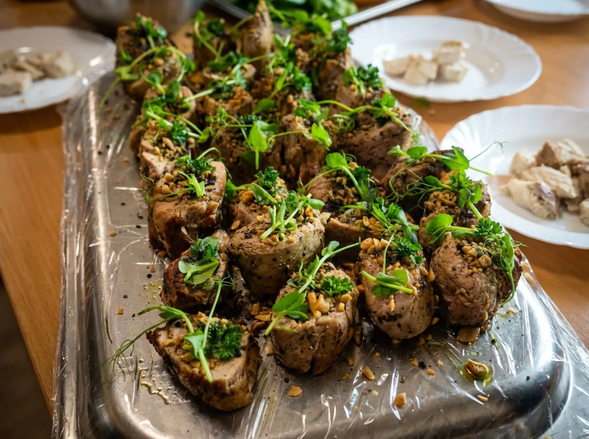 Roland professzionális, mégis közvetlen stílusban mutatta meg a főzés kreatív és örömteli oldalát. A konyhában készülő fogások látványa már önmagában is lenyűgöző volt: friss alapanyagok, különleges textúrák, gondosan megkomponált tányérok – mindez egy igazi éttermi élményt hozott el a lakásotthon falai közé.
